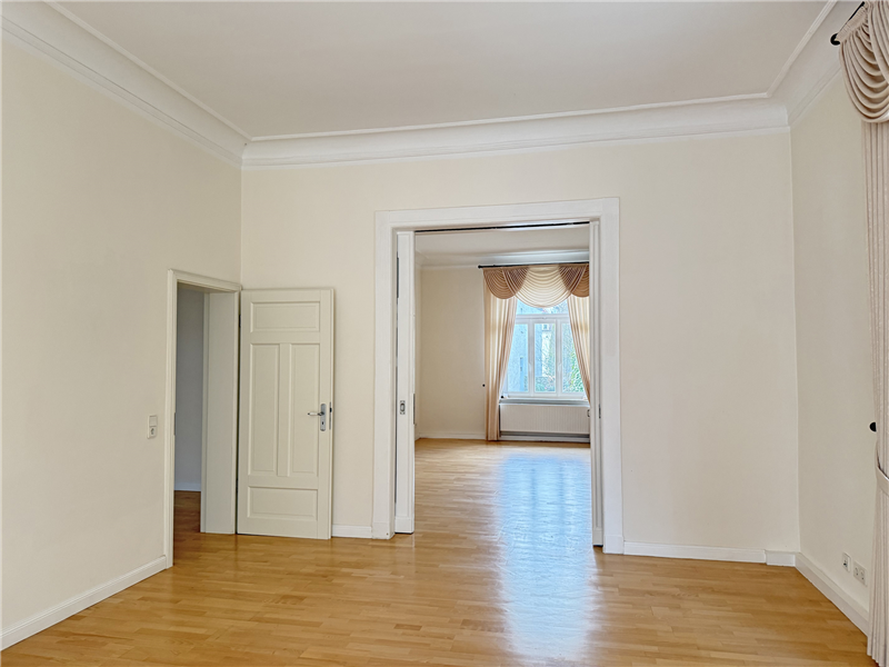 Zentralheizung mit Warmwasseraufbereitung, weiße Holzfenster mit Isolierverglasung. Stilvolle Wohnungseingangstür und weiße Innentüren. Wände und Decken hell/weiß gestrichen, teilw. Stuckdecken. Exklusives Badezimmer mit Wanne, Dusche, Waschbecken, WC, Bidet, Sauna und Fenster. Badezimmer mit Bodenfliesen, alle anderen Räume mit Parkett. Kabel-TV. Großzügige und top-gepflegte Wohnung mit viel Stil und Charme.