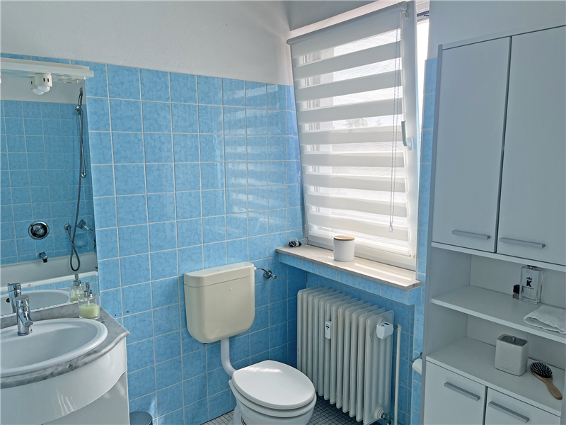 Gaszentralheizung (1993), Warmwasser über Durchlauferhitzer. Separate Zähler (Wasser, Gas, Strom).