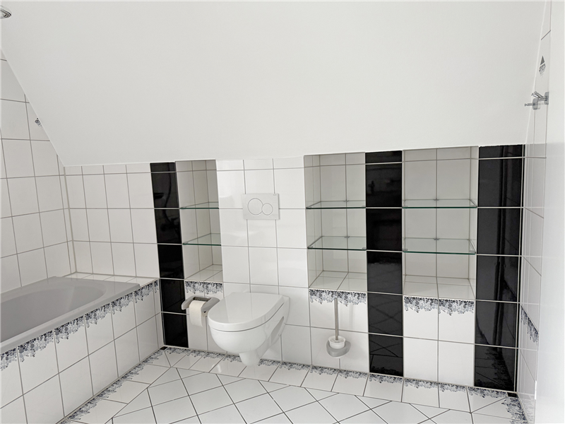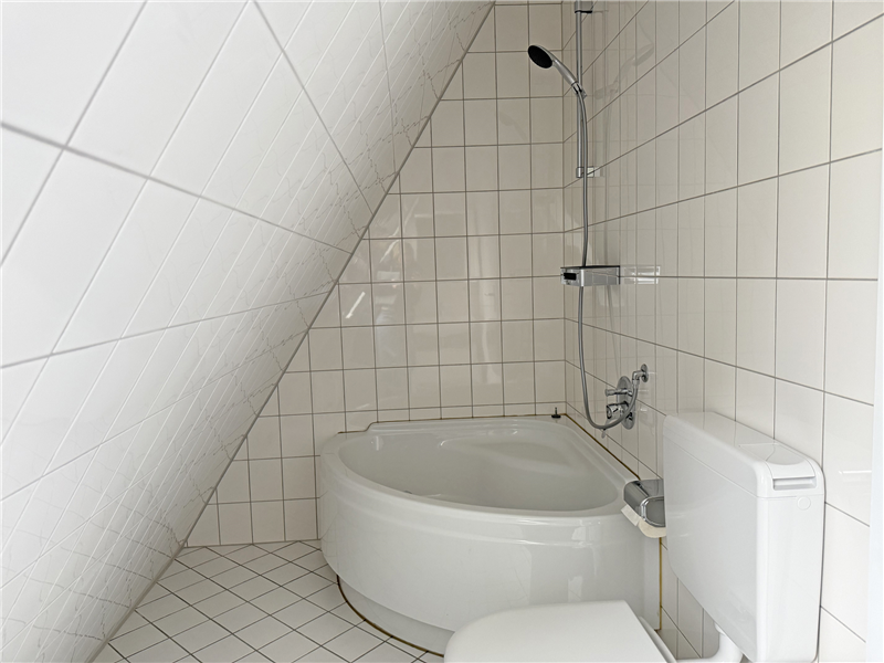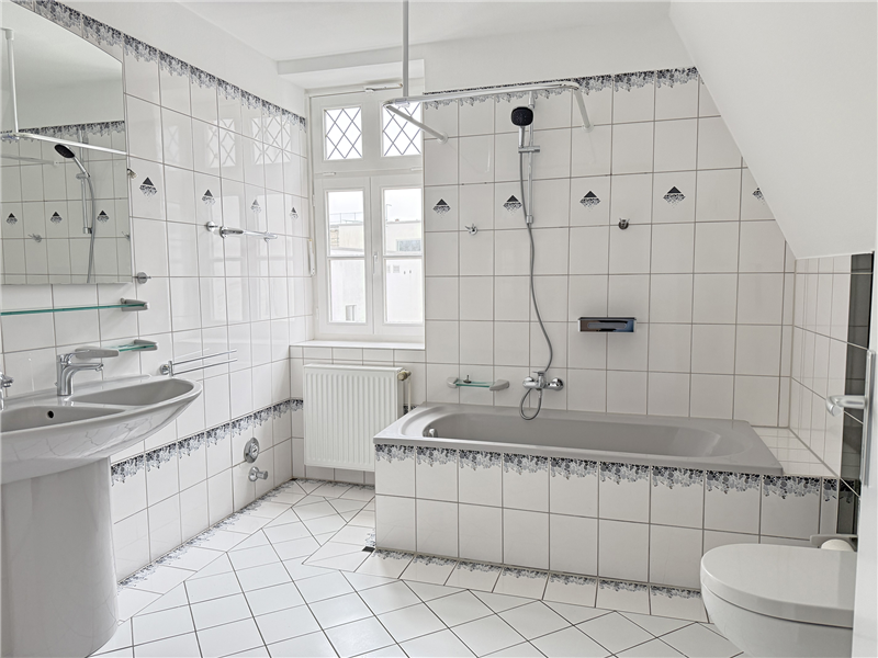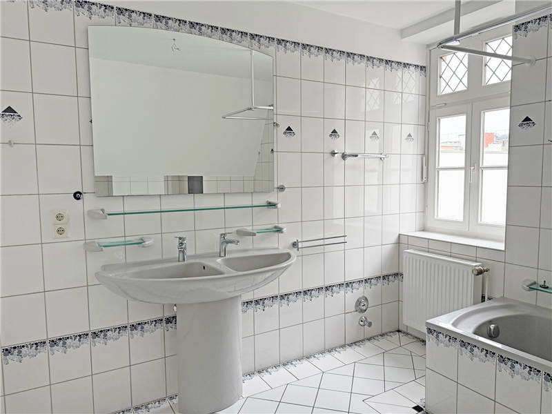 Gasheizung mit Warmwasseraufbereitung, separate Zähler. Holzfenster mit Isolierverglasung. Bad im 2. OG mit Duschwanne, Doppelwaschbecken, WC und Fenster, Bad im Dachgeschoss mit Duscheckwanne, Waschbecken, Spiegelschrank, WC und Dachflächenfenster (Bäder mit neuen WCs und neuen Armaturen).