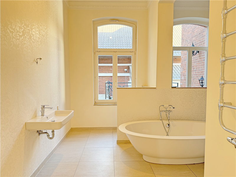 Zentralheizung mit Warmwasseraufbereitung, weiße Holzfenster mit Isolierverglasung. Stilvolle Wohnungseingangstür und weiße Innentüren. Wände und Decken hell/weiß gestrichen, teilw. Stuckdecken. Exklusives Badezimmer mit Wanne, Dusche, Waschbecken, WC, Bidet, Sauna und Fenster. Badezimmer mit Bodenfliesen, alle anderen Räume mit Parkett. Kabel-TV. Großzügige und top-gepflegte Wohnung mit viel Stil und Charme.
