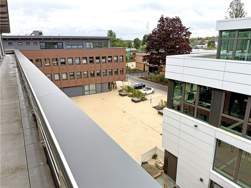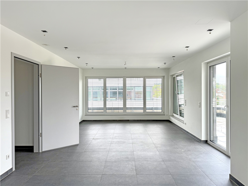 Ca. 296 m² Gesamtnutzfläche im 3. Obergeschoss eines Geschäfts-/Bürogebäudes (9 Parteien). Barrierefreie Einheit mit Fahrstuhl im Treppenhaus. Die Dachterrasse hat eine Fläche von 128 m².