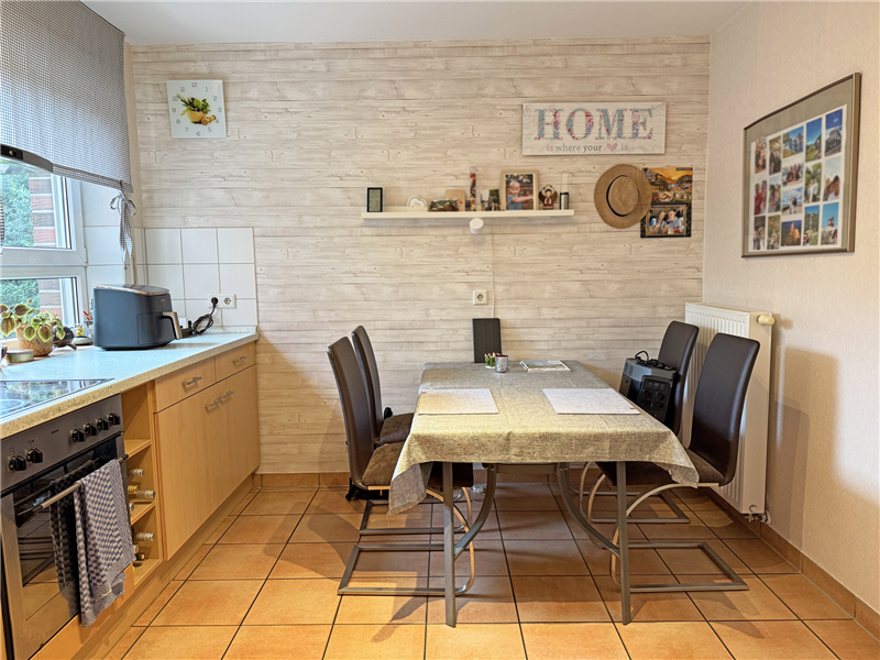 Bäder, Küche und Flure mit Bodenfliesen, alle anderen Räume mit neuem Laminat.