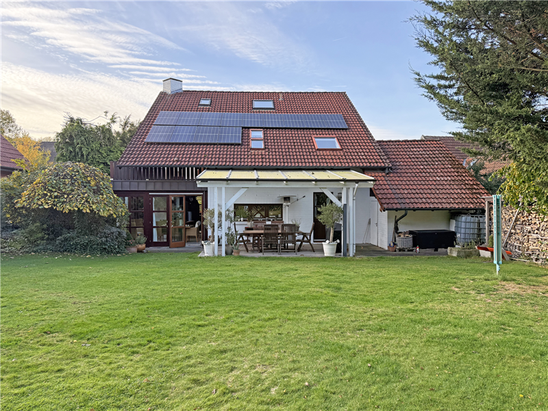Baujahr 1988 – das Haus war durch seine technische und architektonische Bauweise bereits seiner Zeit weit voraus. Massive Bauweise (2schaliges Mauerwerk aus Kalk-Sandstein) mit Spitzboden, voll verklinkert und weiß gestrichen. Laufend modernisiert und renoviert. Wintergarten aus dem Jahr 1999. Wärmepumpe mit PV-Anlage von 2022.