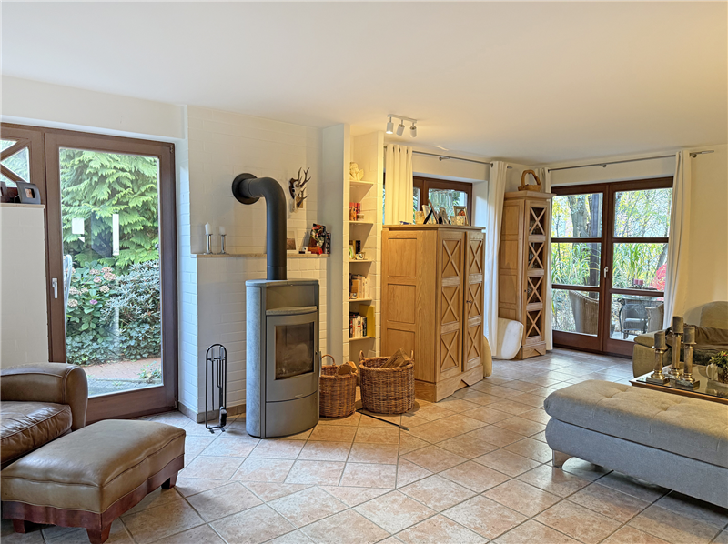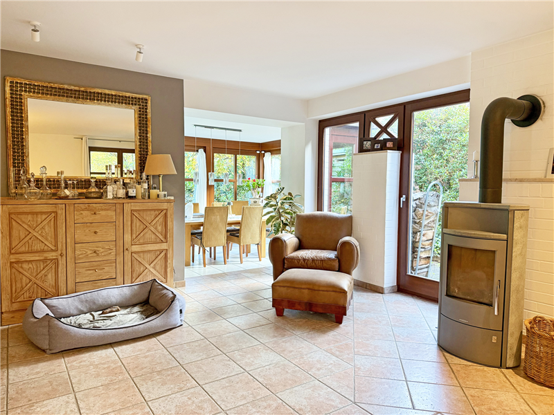 Fußbodenheizung im Erdgeschoss betrieben durch eine moderne Wärmepumpe mit PV-Anlage (2x4,4 KW) mit 10 KW Speicher aus dem Jahr 2022. Wintergarten mit Fußbodenheizung (1999). Holzsprossenfenster (teilweise Rollläden) und Dachflächenfenster mit 2-fachverglasung. Wohnzimmer mit Kaminofen. Klimagerät im Schlafzimmer. Wasserenthärtungsanlage von 2023.