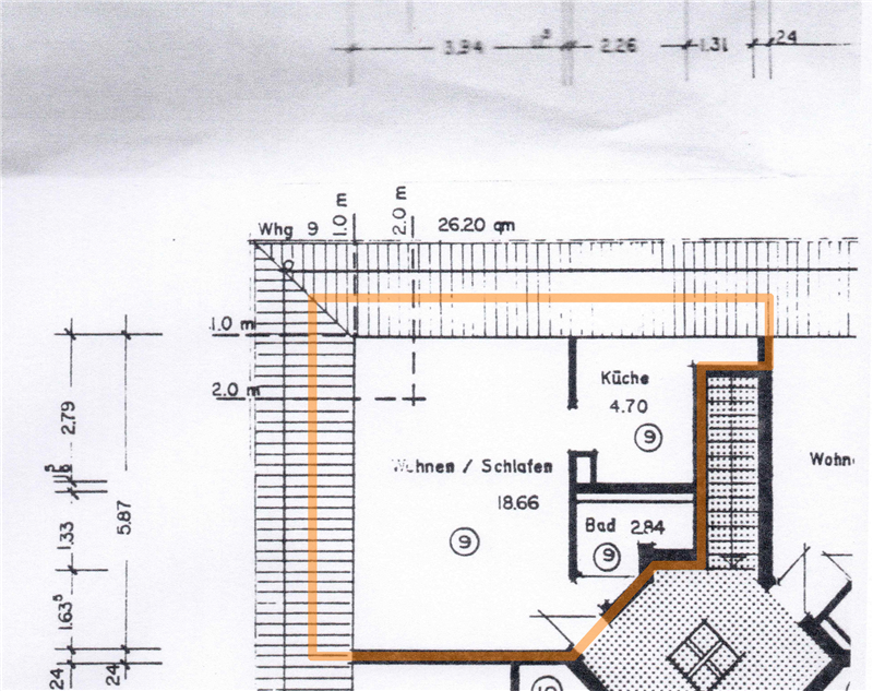 Ca. 27 m² im Dachgeschoss - rechts in einem 12-Parteien Haus.