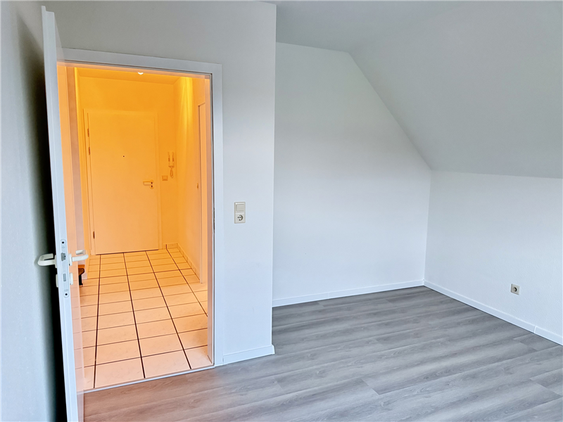 Neues Badezimmer mit Dusche, Waschbecken, WC und 2 Dachflächenfenstern. Küche und Flurbereich mit weißen Fliesenboden, Badezimmer mit neuen Fliesen, alle anderen Räume mit neuem Laminatboden. Kabel-TV möglich. Sonnige Süd-/Ostloggia. Einbauküche inkl. E-Geräte.